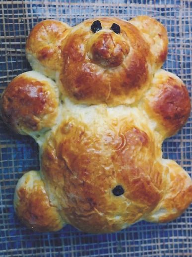 BRIOCHE BREAD: The larger bear is a scrumptious French cream and butter rich delight that is also adorable.