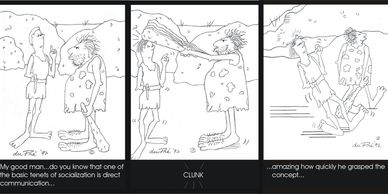 CAPTION: 1. My good man, did you know that one of the basic tenants of socialization is direct contact? 2. CLUNK ! 3. Amazing how quickly he grasped that concept...